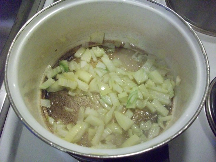 3. Zwiebeln hinzufügen und glasig werden lassen.